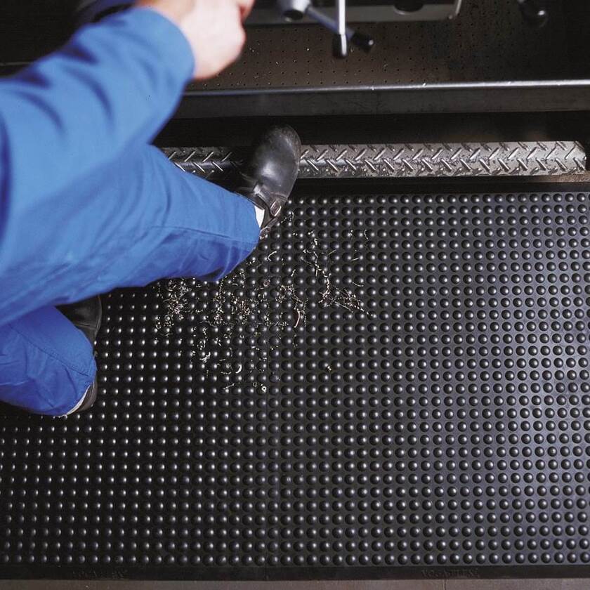 Arbetsplatsmatta tillverkad i naturgummi, vilket ger en mjuk och spänstig matta för bästa ergonomi. De runda bubblorna på ovansidan stimulerar fötterna, ökar blodcirkulationen och Du mår bättre i både ben och fötter. "Bubble" är en mjukare matta som ligger stadigt mot underlaget tack vare sugkoppar på undersidan. Mattan lämpar sig väl även vid låga temperaturer, eftersom naturgummit behåller sin smidighet även vid minusgrader. Den tål väta, men passar bäst i torrare miljöer utan kemikaliepåverkan. Tjocklek 15 mm, färg svart. Välj mellan tre fasta storlekar.