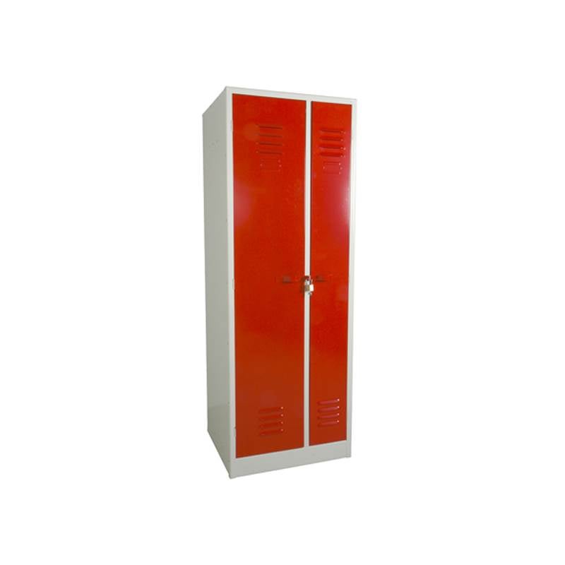 Bredd: 680 mm (Dörrar 2 x 340 mm) Höjd: 1900 mm Djup: 600 mm. Dörrarna är valbara i 3 st färger, Röd RAL 3020, Grå RAL 9002, Blå RAL 5010. Stomme: Grå RAL 9002.
