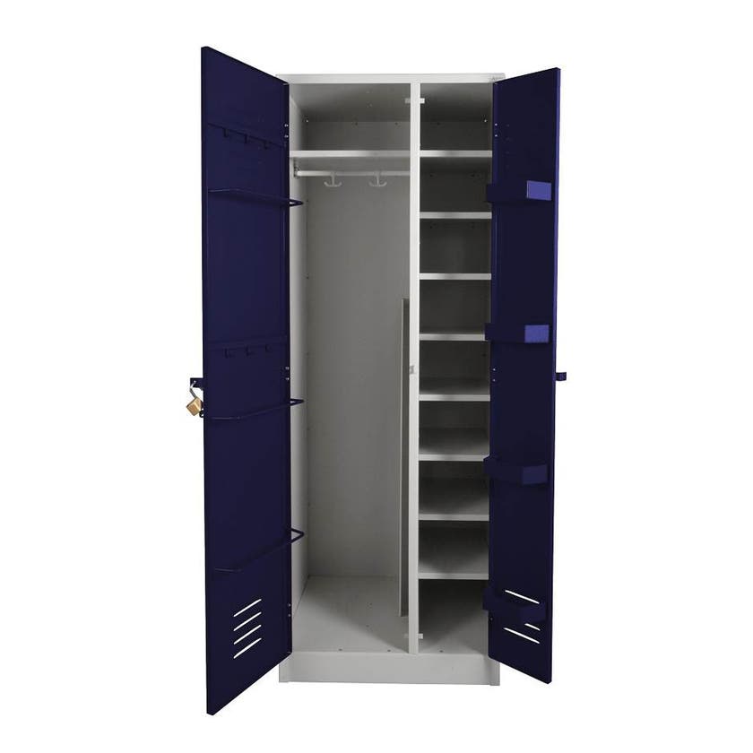 Soldatskåp Defence är ett extra kraftigt skåp framtaget för att täcka behovet för soldater inom försvaret. Solid, svetsad ram över hela skåpets framsida ger soldatskåpet sin extra tålighet. Ventilationsslitsar på dörrarnas ovan- och nedankant. Skåpets dörrar är försedda med fasta låsbyglar som kan låsas med ett hänglås.