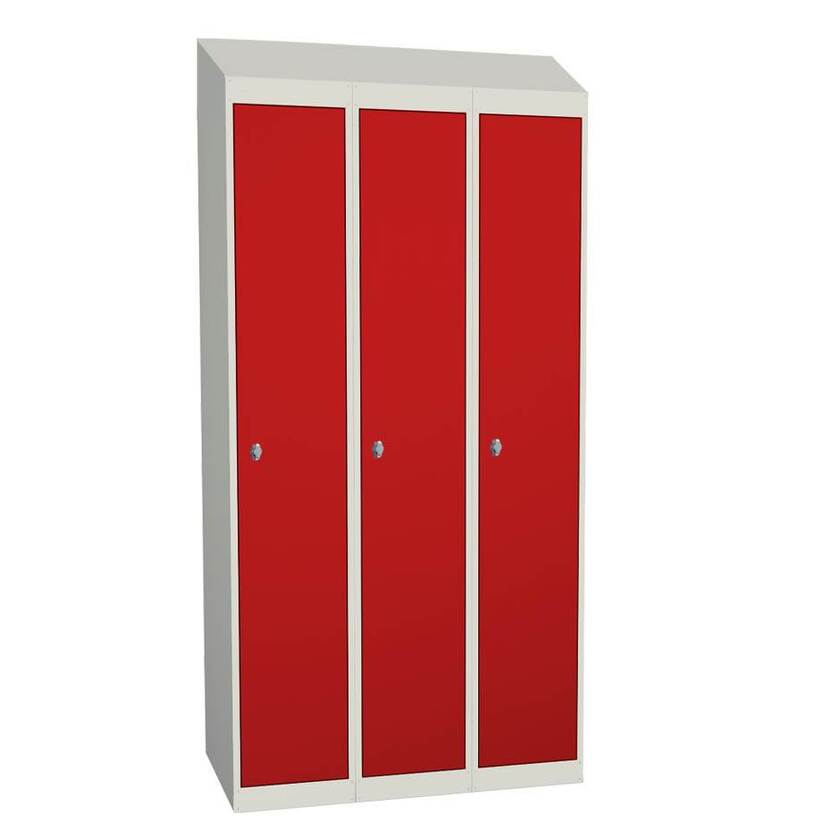 Klädskåp Esko 300, 3 st dörr i bredd, Mått B900 x D550 x H1940 mm, sluttande tak