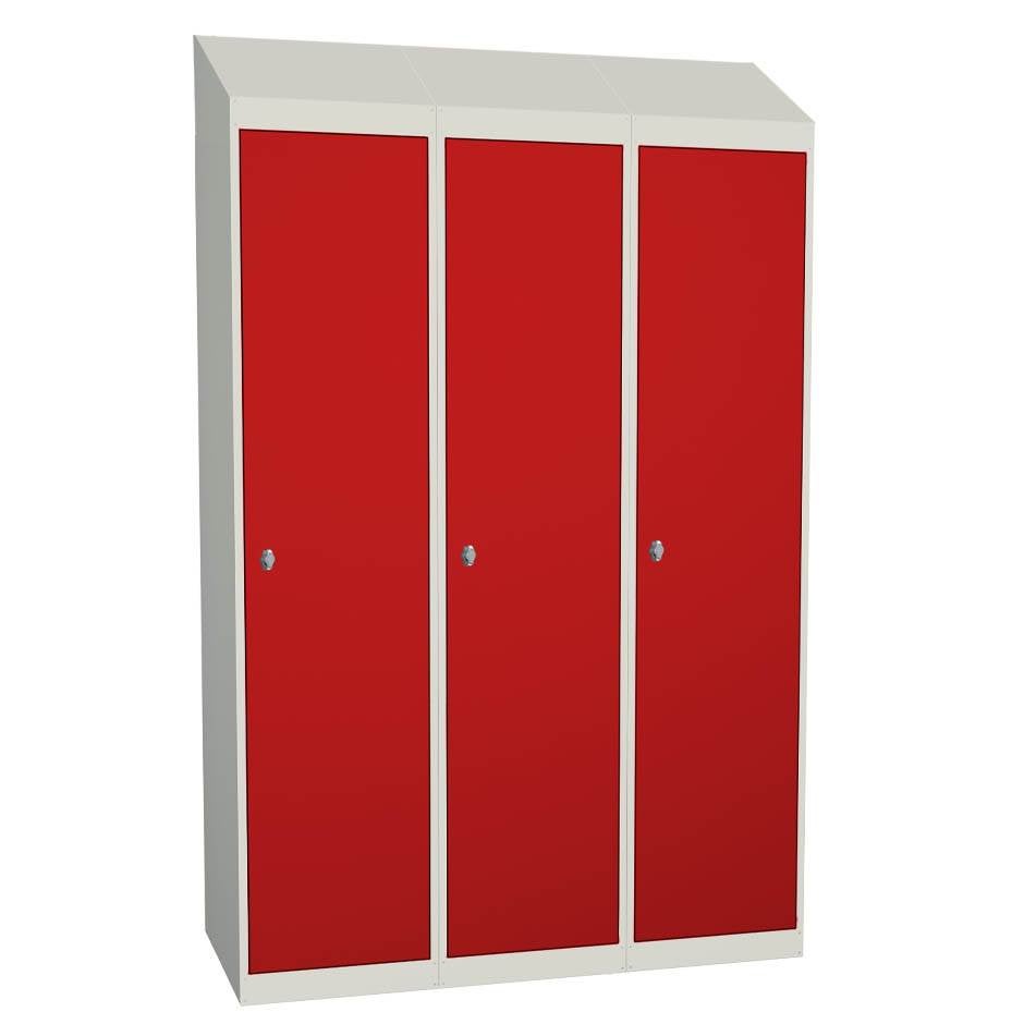 Klädskåp Esko 400, 3 st dörr i bredd, Mått B1200 x D550 x H1940 mm, sluttande tak