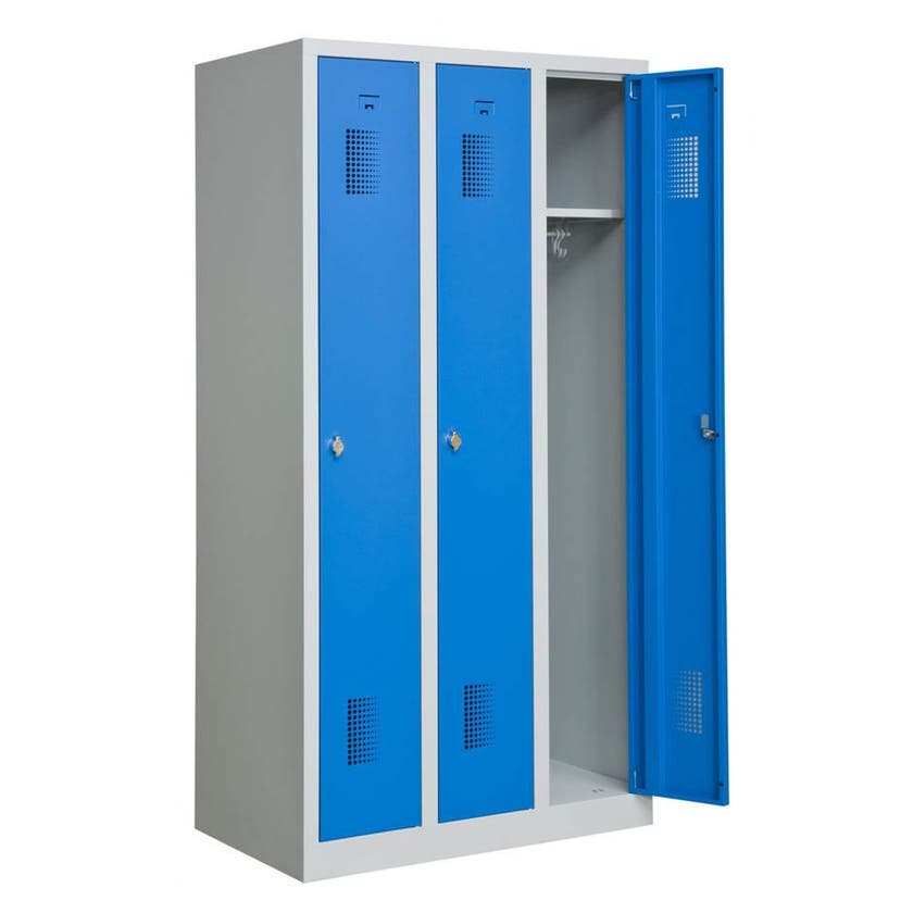 Klädskåp med sockel, 3x300 mm, 900x550x1800 mm, klinka för hänglås, lackerat