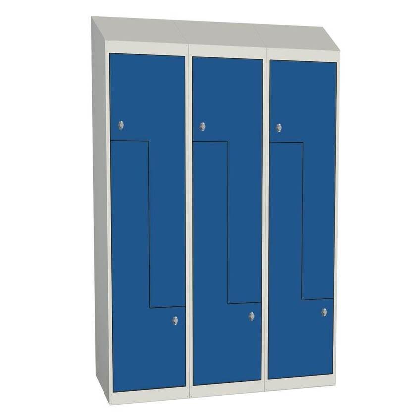 Klädskåp Esko Z-4, 3 x 2 i höjd, Mått B1200 x D550 x H1940 mm, sluttande tak