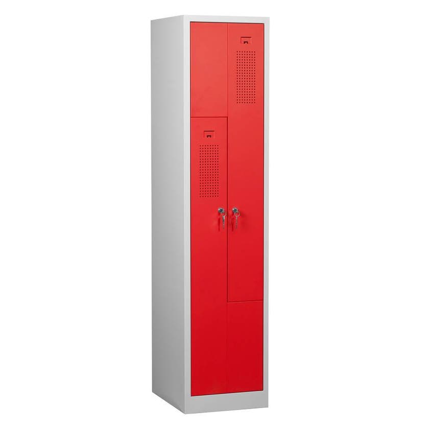 Klädskåp i Z-utförande med 2 fack i höjd.