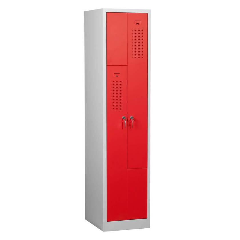 Klädskåp med Z-dörr, 2-fack i höjd, 415x500x1800 mm, cylinderlås, lackerat