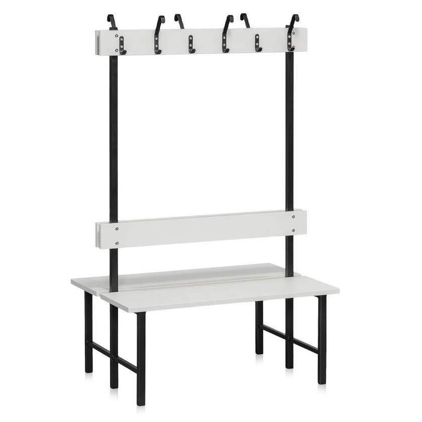 Sittbänk Kumi med klädkrokar, Dubbelsidig, längd 1000 mm, Ljusgrå laminat