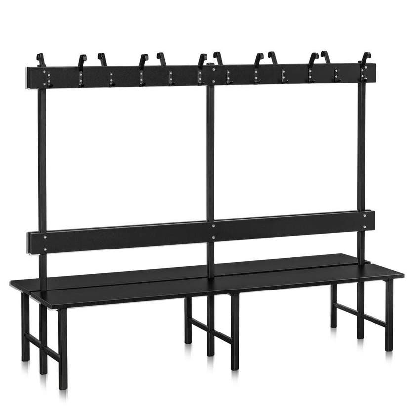 Sittbänk Kumi med klädkrokar, Dubbelsidig, längd 2000 mm, Svart laminat