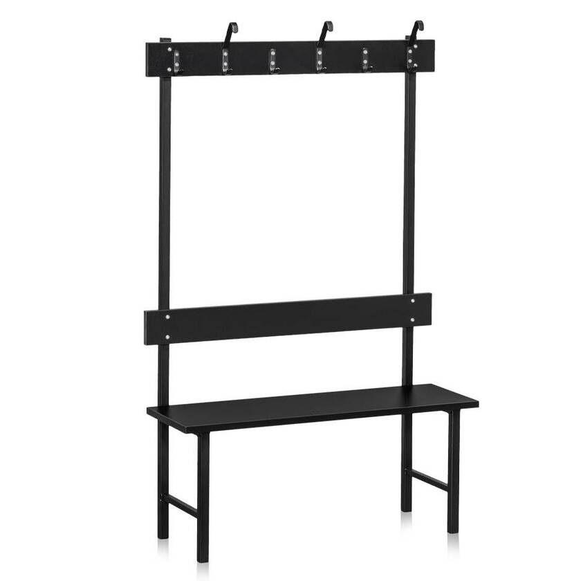 Sittbänk Kumi med klädkrokar, Enkelsidig, längd 1000 mm, Svart laminat