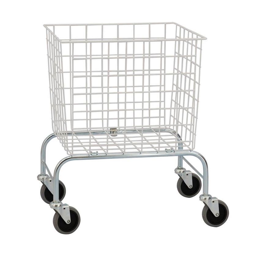 Lättkörd vagn för lättare last, exempelvis tvättgods. Elförzinkat stativ och löstagbar 85 L korg i vitlackerad trådmetall. Mått B:450 x D:480 x H:650 mm. Utrustad med 4 st svängbara 100 mm gummihjul.