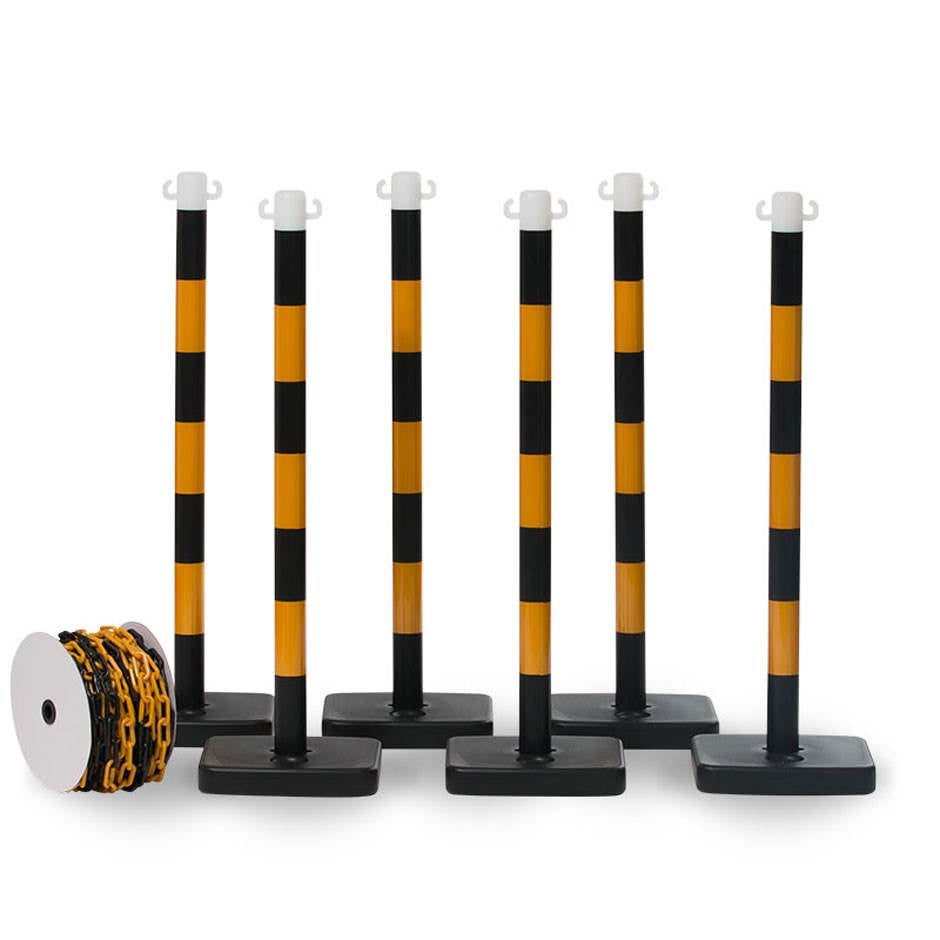 Avspärrningskit Stay out, med 6 st stolpar med plastfot och 25 m kedja av plast