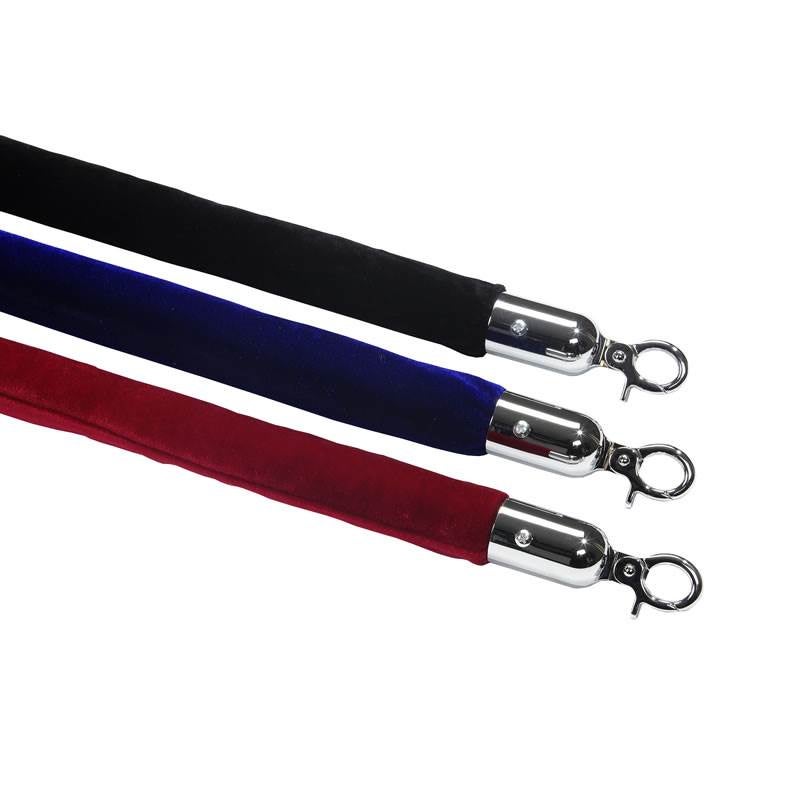 Rep av sammet, för stolpe/krona Disco eller Hotel. Välj mellan rep i färgerna röd, blå eller svart samt mellan fäste i mässing eller rostfritt.