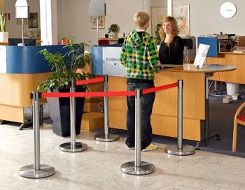 Väggfäste till avspärrningsband Mäss och Bank. Tillverkat i rostfritt stål.