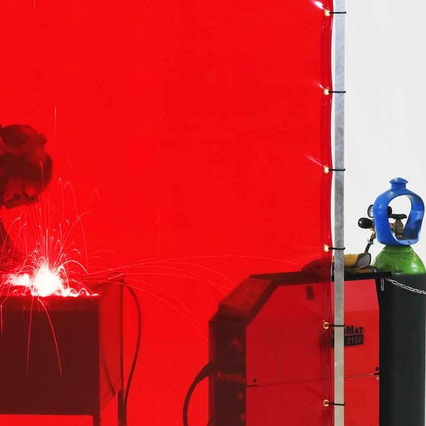 Skärmen är flamskyddad och tål svetsstänk, slipstänk m.m. Skyddar även mot UV-strålning - skärm med transparent duk tar bort hela 99,8 % av all skadlig UV-strålning! Draperimaterial i PVC, välj mellan tät eller transparent PVC i ett flertal standardfärger.