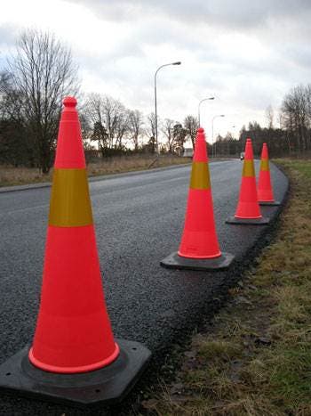 Mycket stabil och stryktålig plastkon med HI-reflex. Konen har svart gummifot och är travbar.