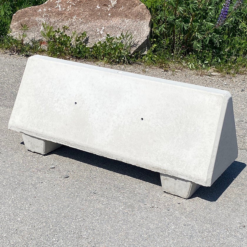 Betongsugga 250 kg. Pålitligt som påkörningsskydd eller effektiv avspärrning. Förberedd för att utrustas med reflex. Måtten på och mellan fötterna är anpassade för att suggan ska kunna transporteras på EU-pall. Enkel förflyttning med hjälp av truck. Grå eller vit färg.