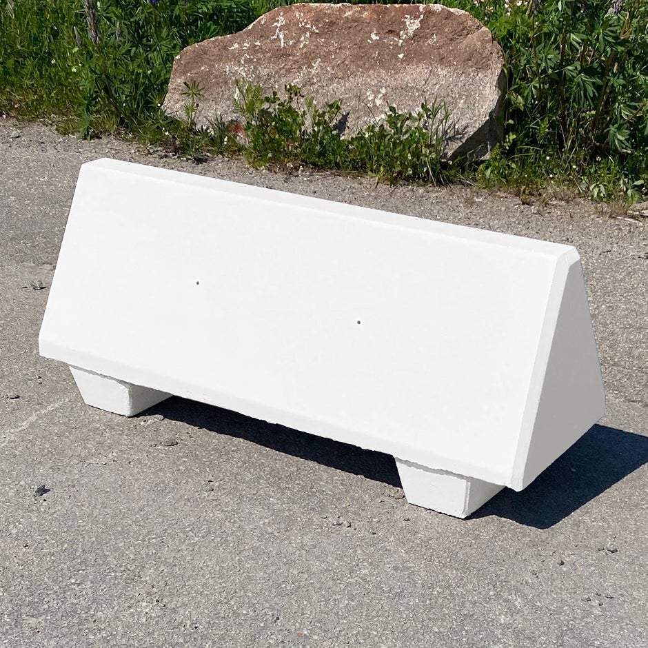 Betongsugga 250 kg. Pålitligt som påkörningsskydd eller effektiv avspärrning. Förberedd för att utrustas med reflex. Måtten på och mellan fötterna är anpassade för att suggan ska kunna transporteras på EU-pall. Enkel förflyttning med hjälp av truck. Grå eller vit färg.