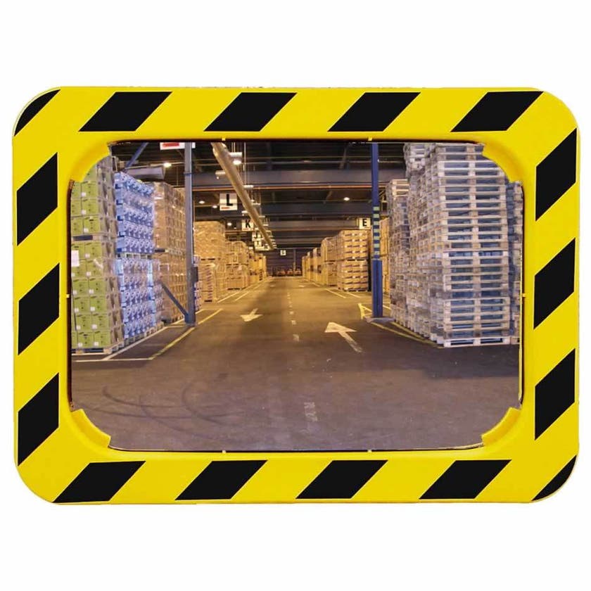 Industrispegel med gul-svart ram i enlighet med EU:s direktiv för att förhindra olyckor (EC 92/58). Tvåriktningsseende ca 90 grader. Rekommendas inomhus för att undvika kollisioner och döda vinklar, t.ex. på lager.