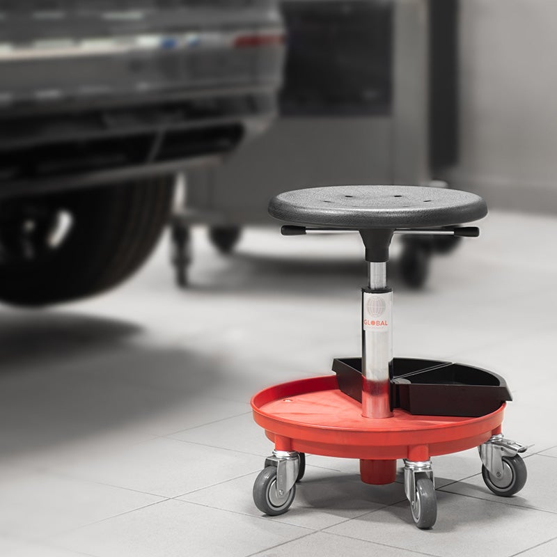 Åkstol Global, PU-sits och 5 st hjul, höjdjustering 350-480 mm