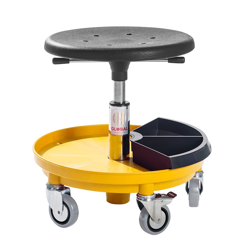 Åkstol Global, PU-sits och 5 st hjul, höjdjustering 350-480 mm