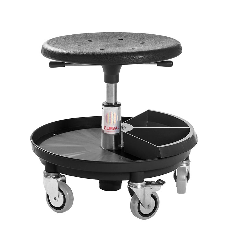 Modern och bekväm åkstol med två handtag för lättåtkomlig höjdjustering. Stabilt underrede med hylla, smådelsfack och fem svängbara hjul, varav två med broms. Sits i behaglig integralskum (PU). Välj mellan underrede i flera olika färger.