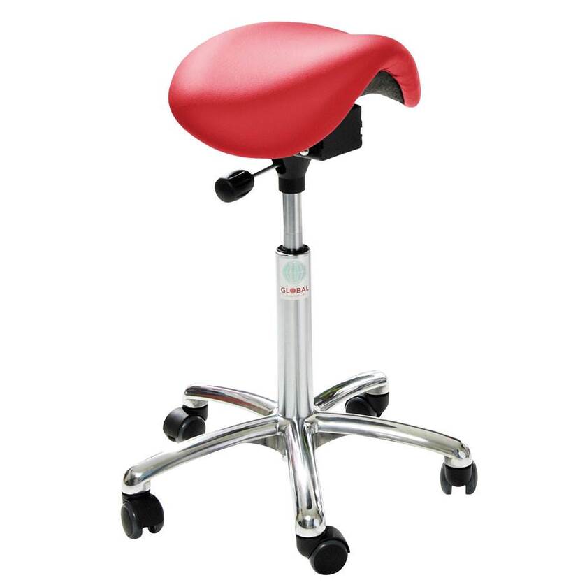Sadelstol Mini. Ytterst bekväm och ergonomiskt sittriktig. Aluminiumskryss med lättrullade hjul. Välj mellan sitthöjd 480-610 mm eller 580-770 mm. Klädd i konstläder valbar i 5 färger, alternativt tyg i samma nyanser. Utrustad med Easy Seat sitsmekanik som möjliggör vinkling 5° bakåt till 12° framåt.