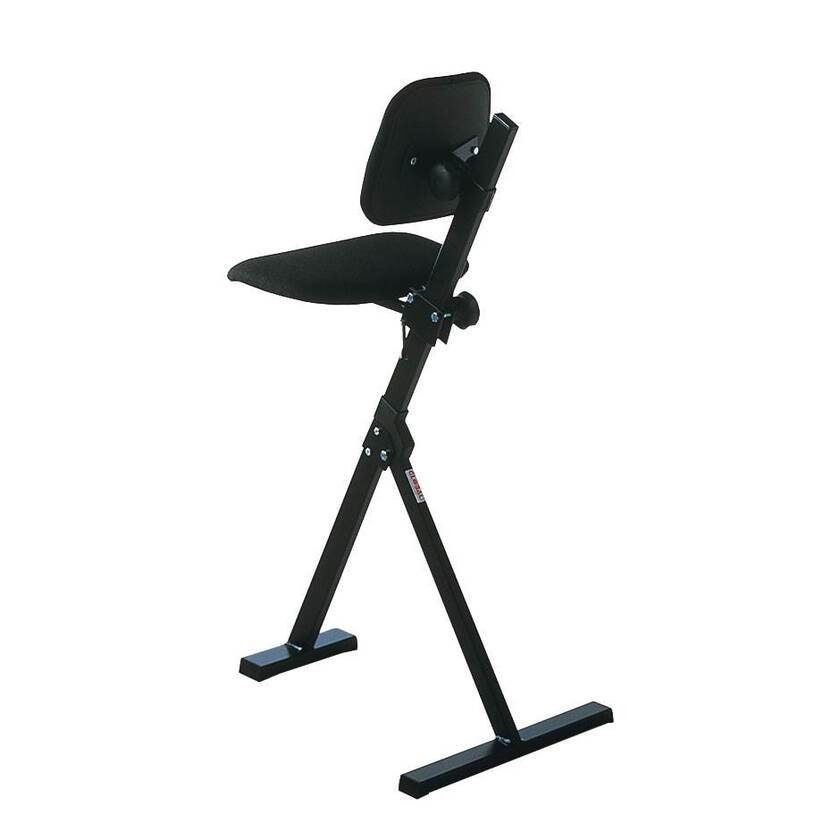 Praktisk ståstödstol som underlättar och avlastar vid stående arbete. Sits och rygg är separat ställbara i höjd, 500 - 850 mm. Vinklingsbar sits och ställbar rygg. Svartlackerat metallstativ med sits och rygg i tyg.