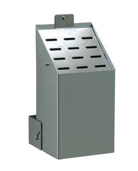 Praktisk askkopp för utemiljö. Tillverkad av zinkad och lackerad metall. Mått H:330 x B:150 x D:155 mm. Öppnas och fälls framåt vid tömning genom att lossa skruven mitt fram. Dold väggmontering på baksidan.