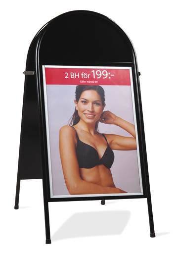 Klassiskt skyltställ Visa där Du lätt byter budskap och som är smidigt att flytta. Budskapet appliceras enkelt med hjälp av magnetförsedd, UV-beständig frontplast.
