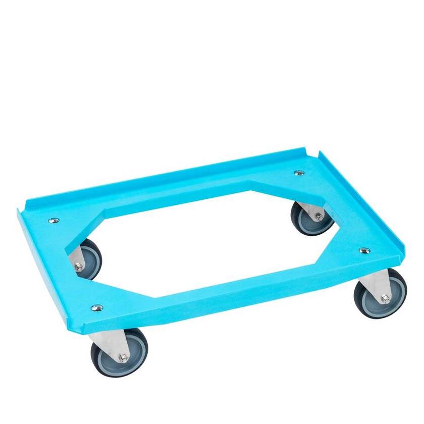 Tralla Hugo, L615 x B415 x H170 mm, kapacitet 200 kg, 4 länkhjul, blå