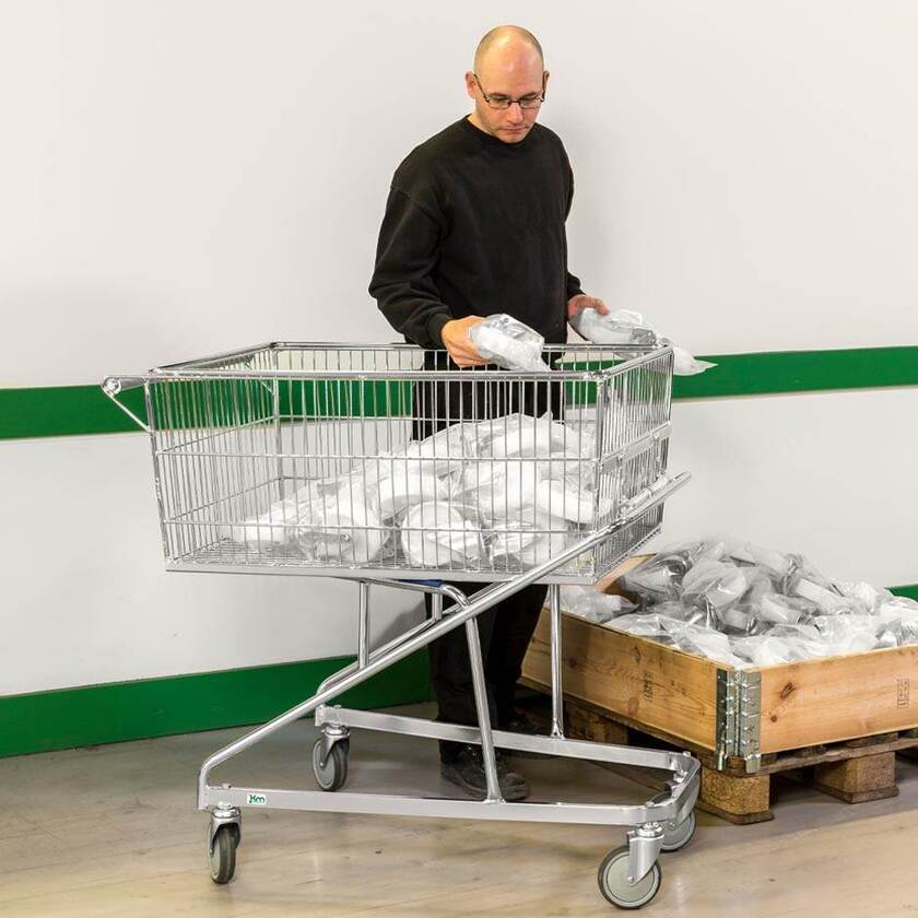 En allroundvagn med så många användningsområden att endast fantasin sätter gränser. Ram och gallerkorg av elförzinkat stål med fantastiskt gedigen konstruktion. Allroundvagnens gallerkorg går att tilta 45° uppåt och blir då stackningsbar likt ordinära kundvagnar. Tiltfunktionen går såklart även att använda vid tömning av gods.
