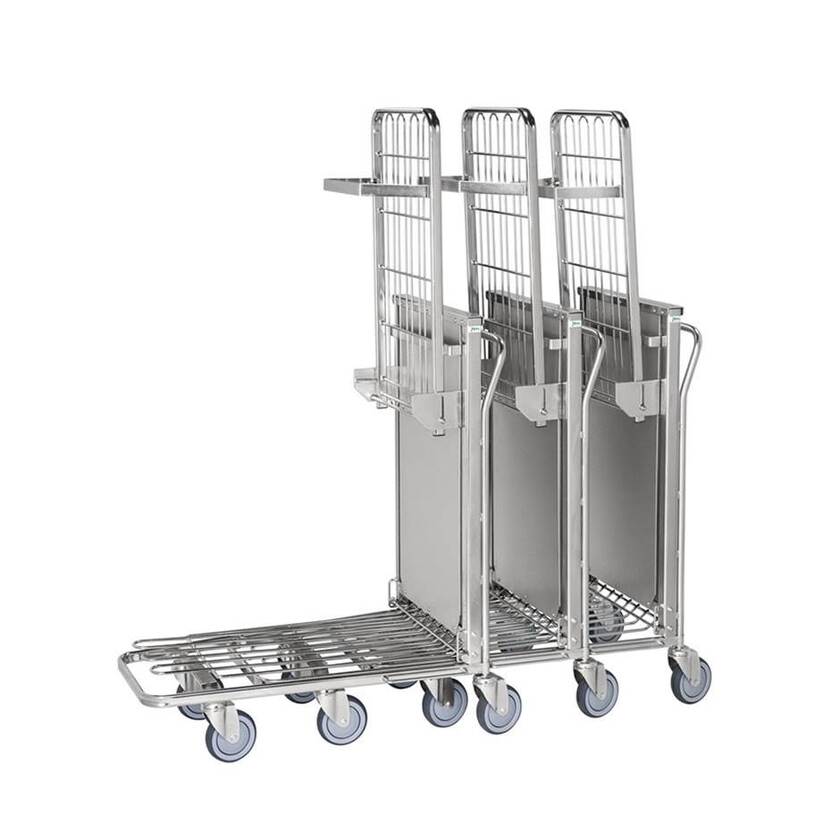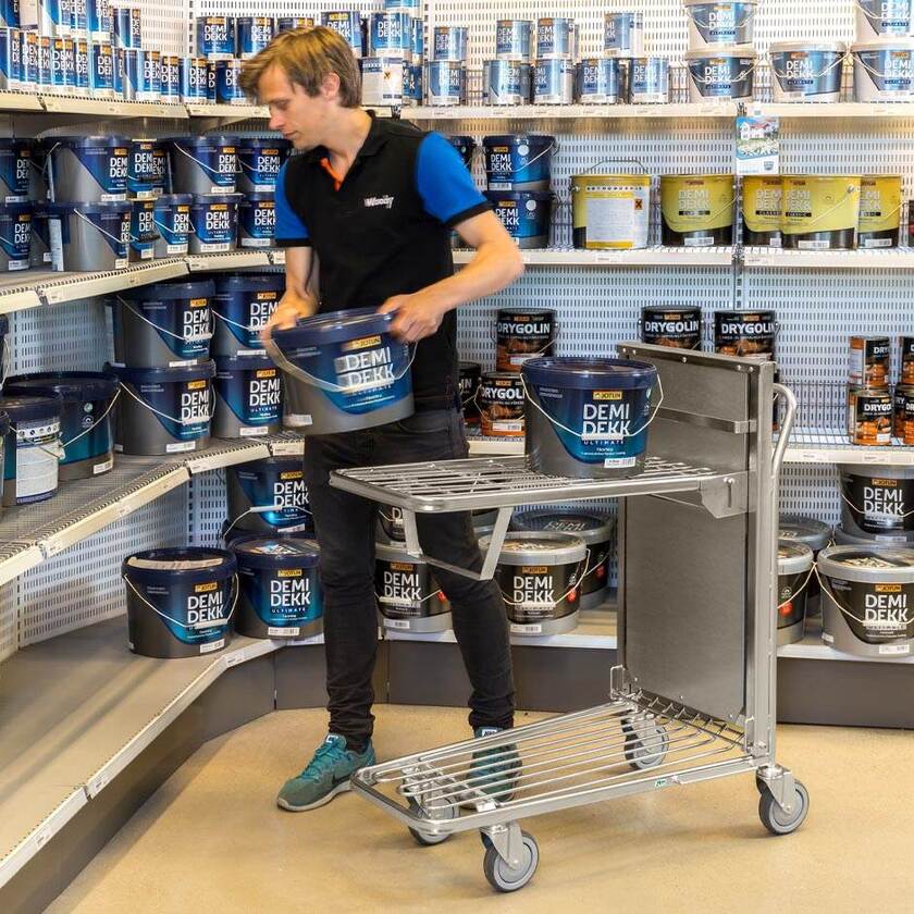 Smidig butiksvagn lämplig för butiker eller lager. Butiksvagnen är stackningsbar där det övre hyllplanet är fjädrande för att få en ergonomisk arbetshöjd. Fjädrande hyllplan vid belastning 0-90 kg, vid 90 kg når butiksvagnen sitt lägsta läge. Elförzinkat, klarlackat utförande.