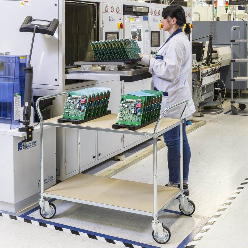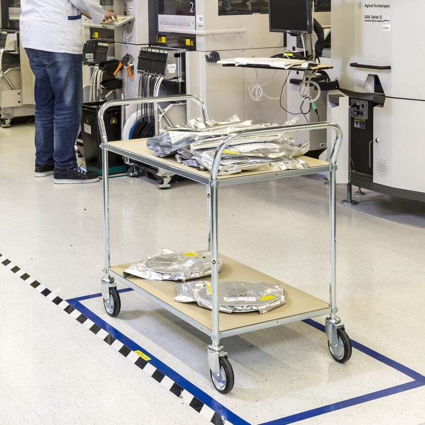 Bordsvagn John är en rejäl kvalitetsprodukt, lämplig i indusri- och labbmiljö där det krävs ESD-anpassade hjälpmedel.