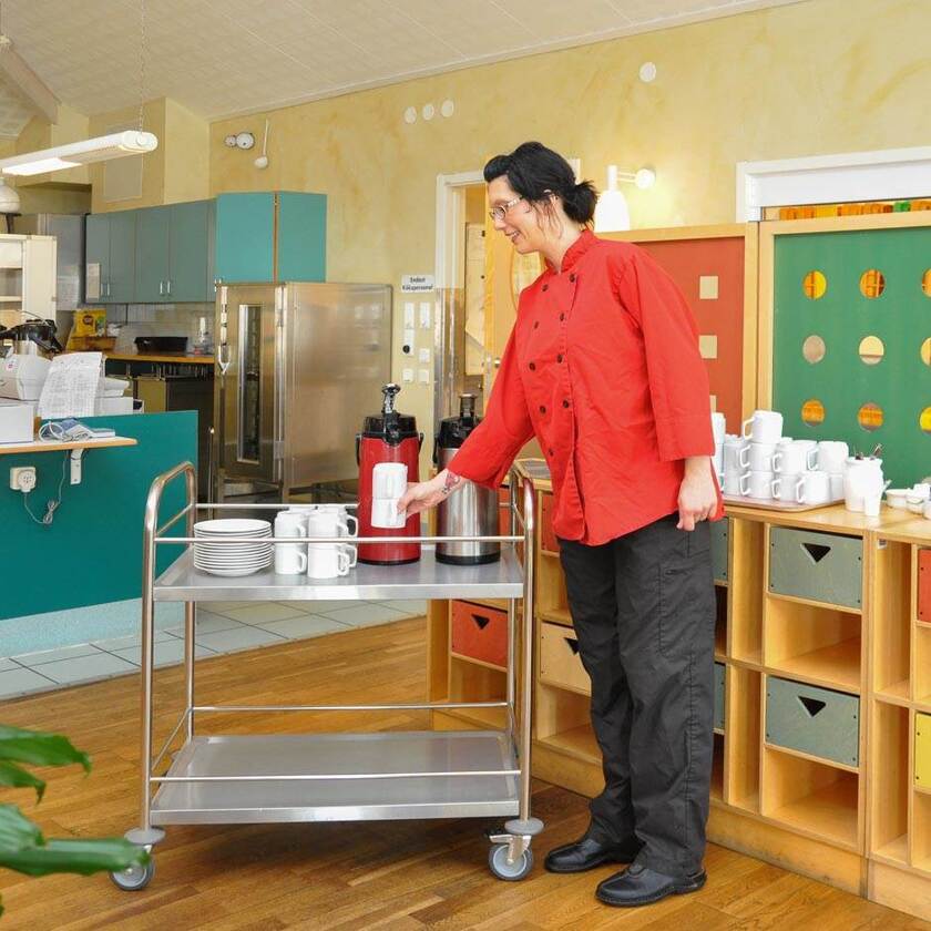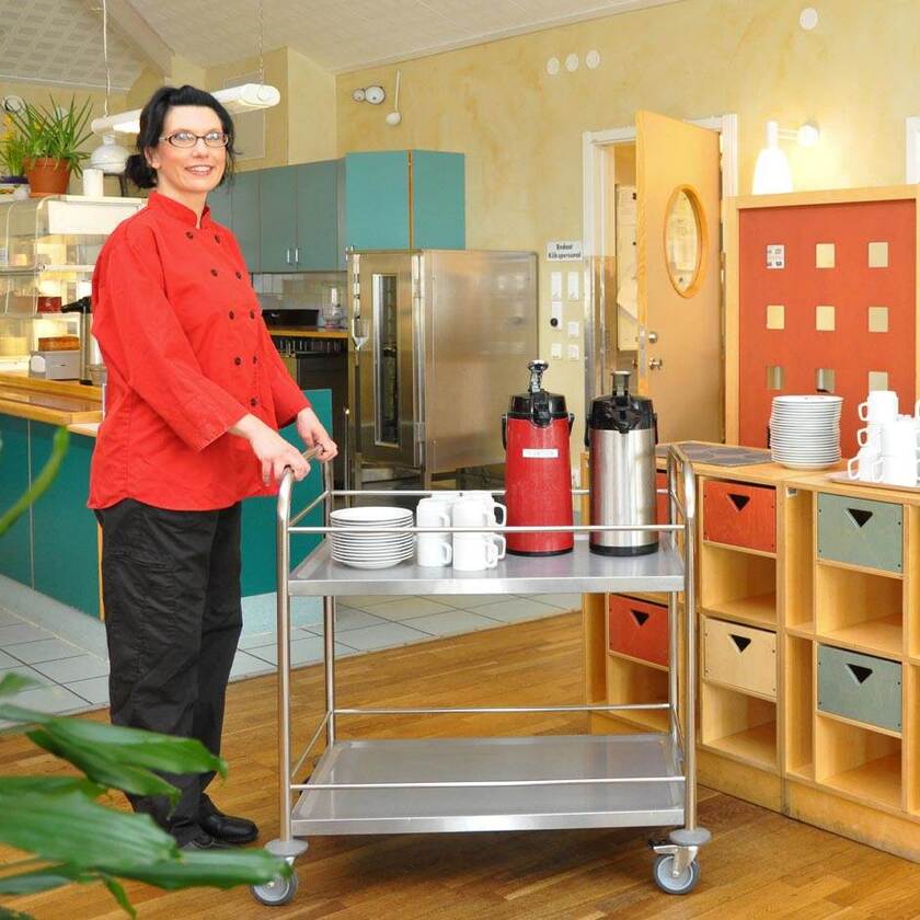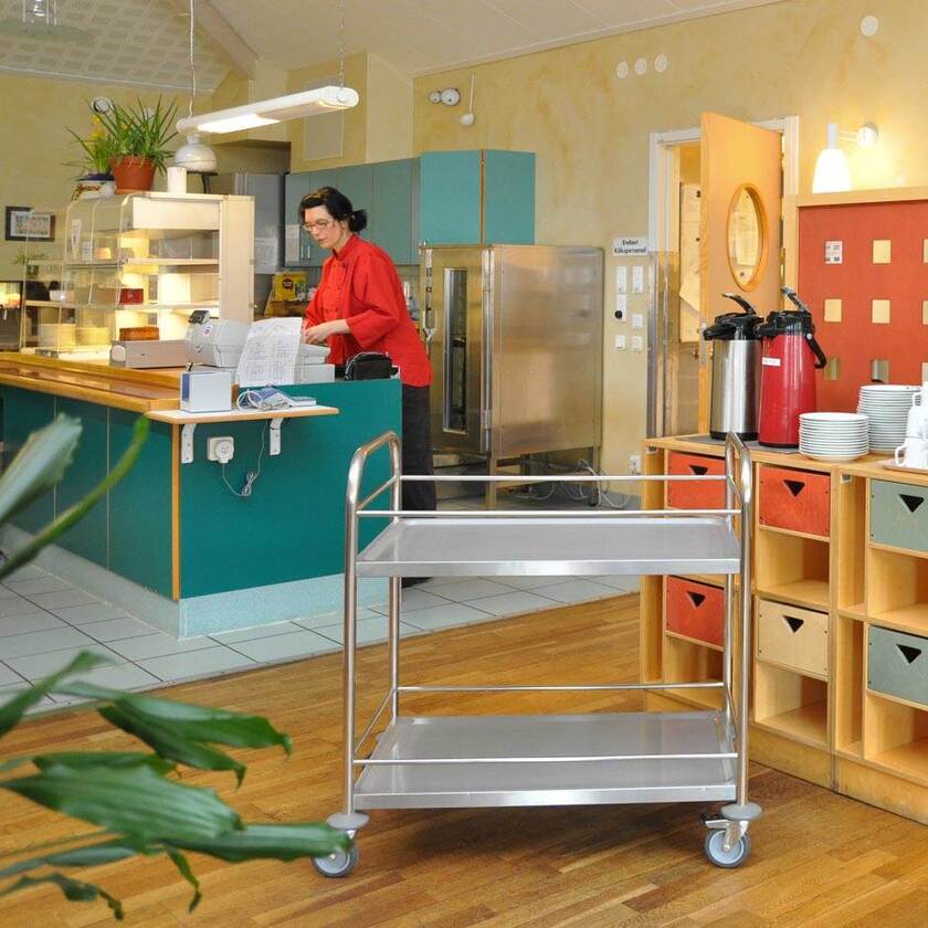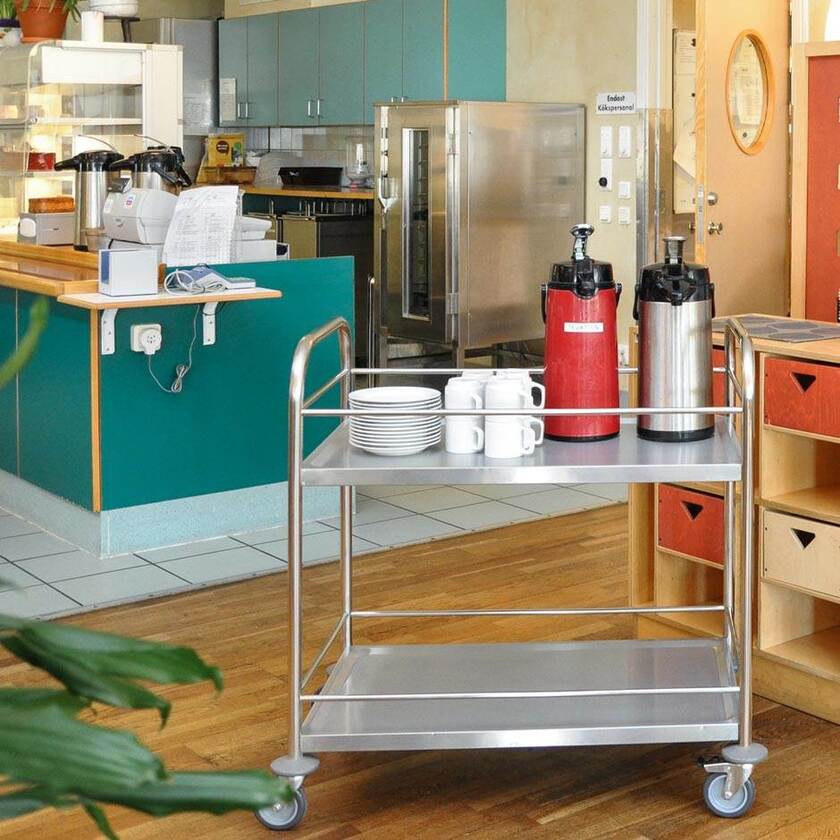 Leo är en mångsidig hyllvagn lämpad för exempelvis servering eller i storköket.