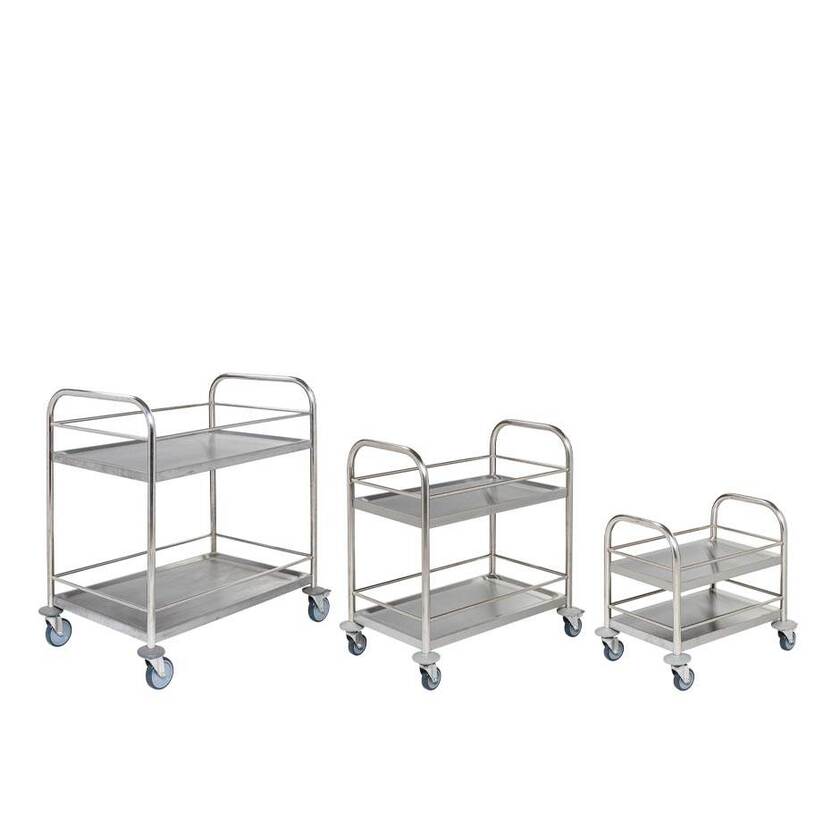 Praktisk, rostfri hyllvagn med två hyllor. Hyllvagnen är utrustad med sarger runt hyllorna som underlättar transport av flaskor och annat ömtåligt gods som kan falla av hyllvagnen. Hyllvagnen är klassad enligt ISO 9223 kategori C2 & C3.