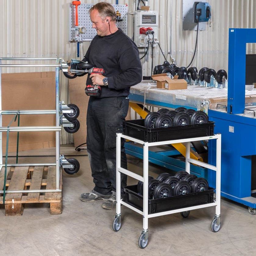 Utrustad med 4 st Ø100 mm länkhjul med grå gummibana. Önskar du utrusta ditt rullbord med broms på ett av hjulparen så är det möjligt i rullisten nedan.