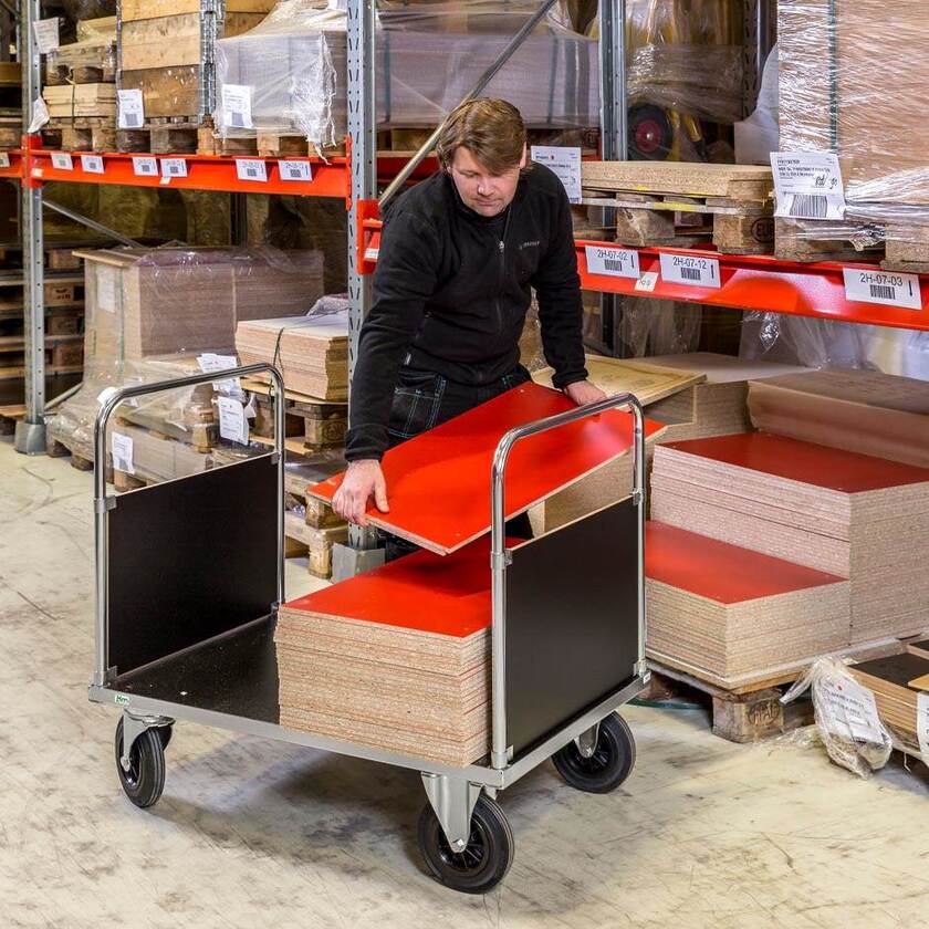 Vagn Brad, gavlar kortsidor, 1000x700x900 mm, kap. 500 kg, elförz./MDF