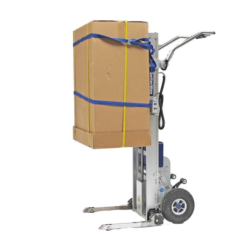 BW 170A är en elektrisk trappklättrare med elektrisk lift. Den integrerar klättring, lyftning och hantering i en och samma produkt. Maskinen ger fler möjligheter och större flexibilitet när det gäller lyftuppgifterna. Den klarar både tunga lyft upp och ner för trappan, och kan även användas för t.ex. monteringsuppgifter. Med liften kan du också justera tyngdpunkten optimalt på lasten genom att höja eller sänka den. På så sätt blir det ännu lättare att transportera tunga föremål i trappor.