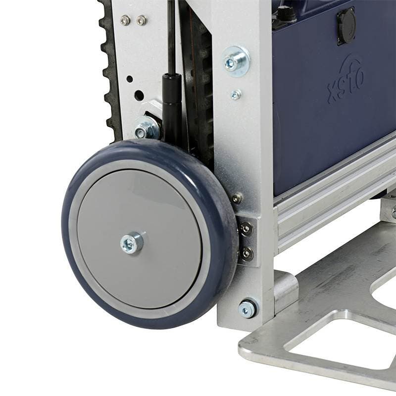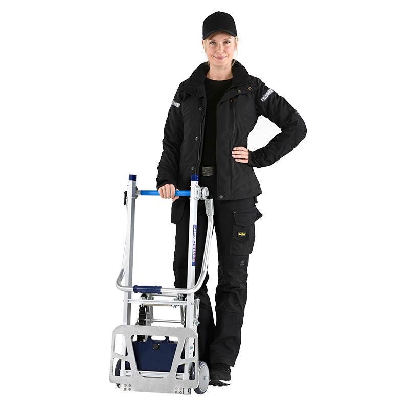 Den kompakta designen har många fördelar. Först och främst tar trappklättraren upp minimalt utrymme vid förvaring. Den kan också tas med i bilen eller skåpbilen utan problem. Den är utrustad med larvfötter och gummihjul, som är mycket hållbara och skonsamma för golvet. Man kan även ställa in styret så att det får rätt lutning för din transportuppgift.