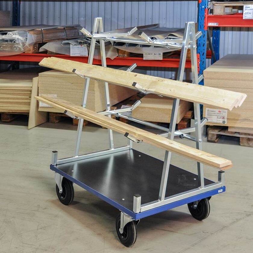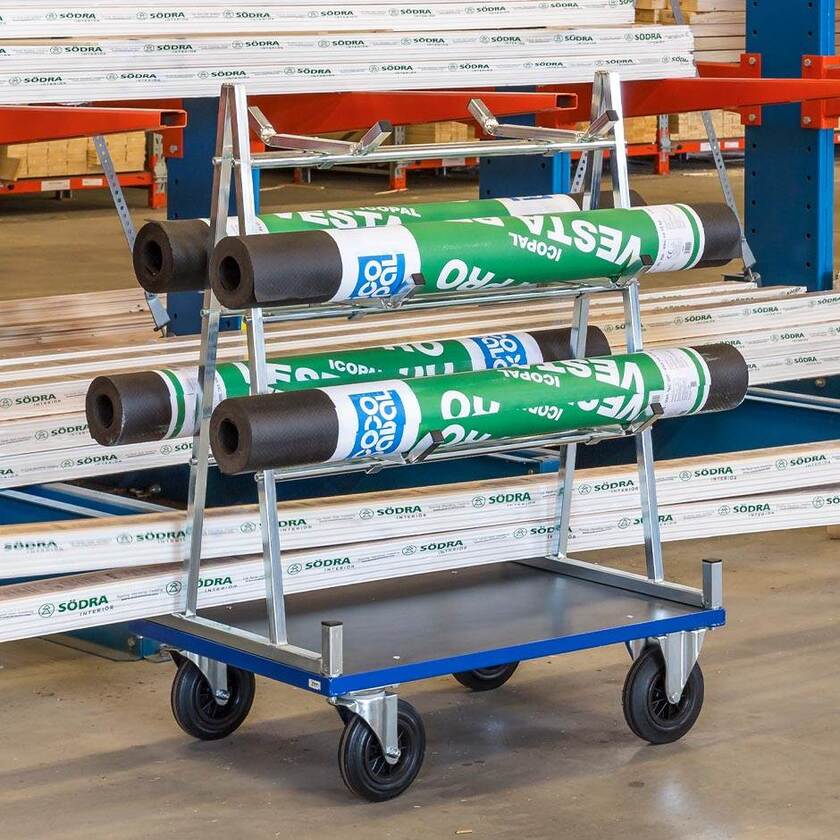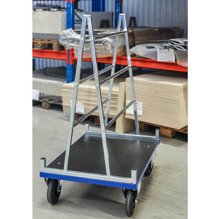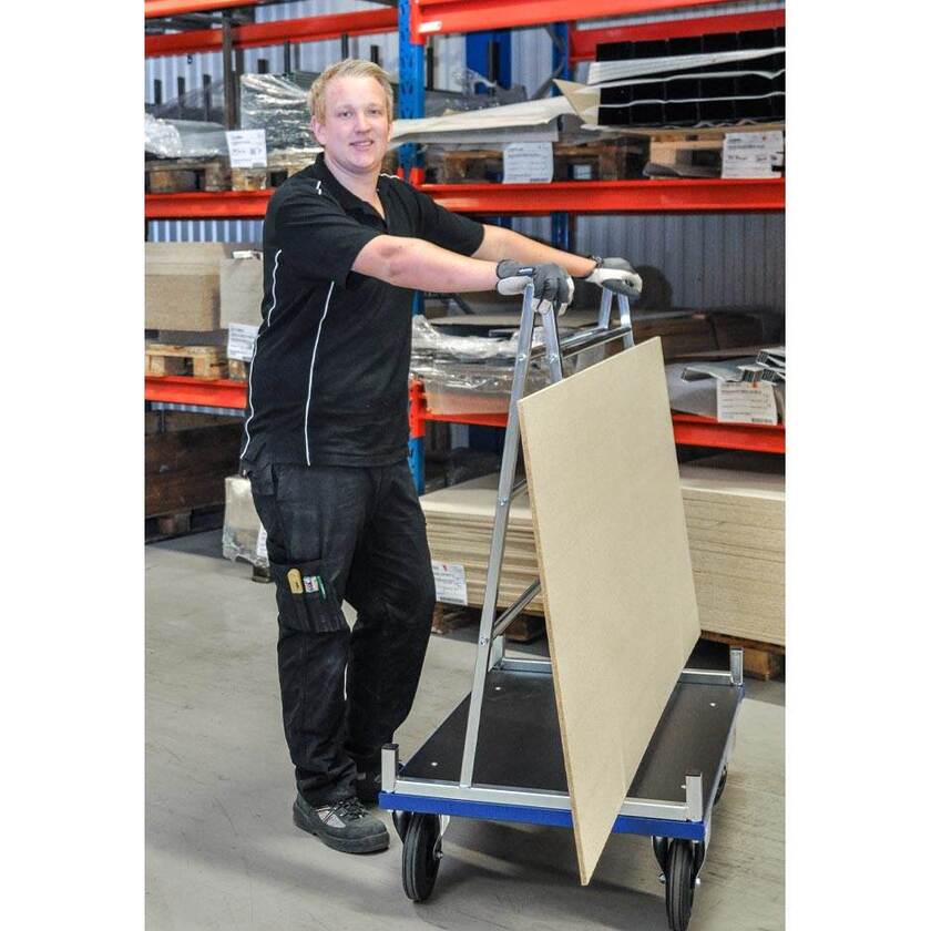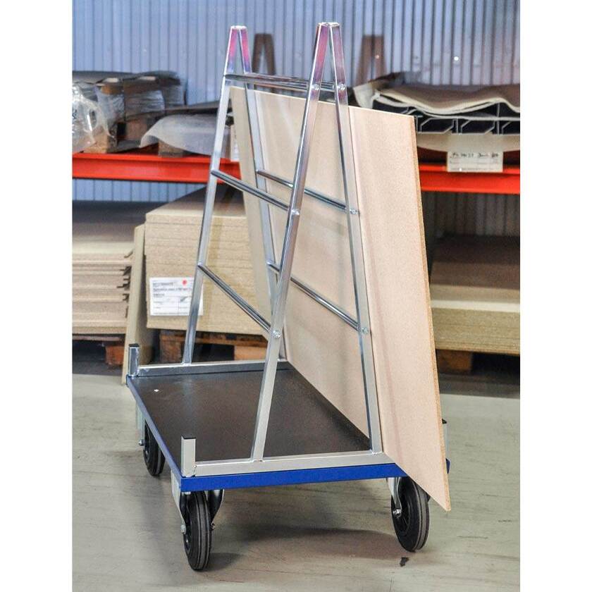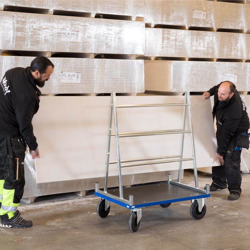 Just hantering av skivmaterial är påfrestande för såväl kroppen och materialet, en skivvagn med länkhjul som gör transporten smidig sparar såväl tid som fysik. Skivvagnens lastbredd i botten är 140 mm. Den är bestyckad med två st länkhjul samt två fasta massiva gummihjul, Ø200 mm. Du finner en rad olika hjulalternativ till din skivvagn i tillbehörslistan.