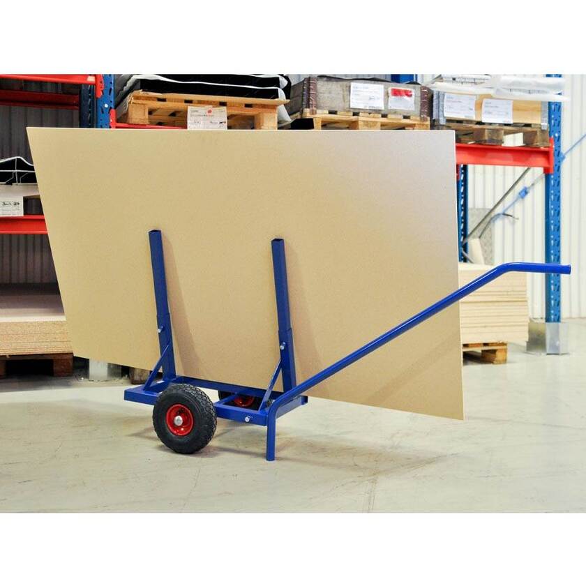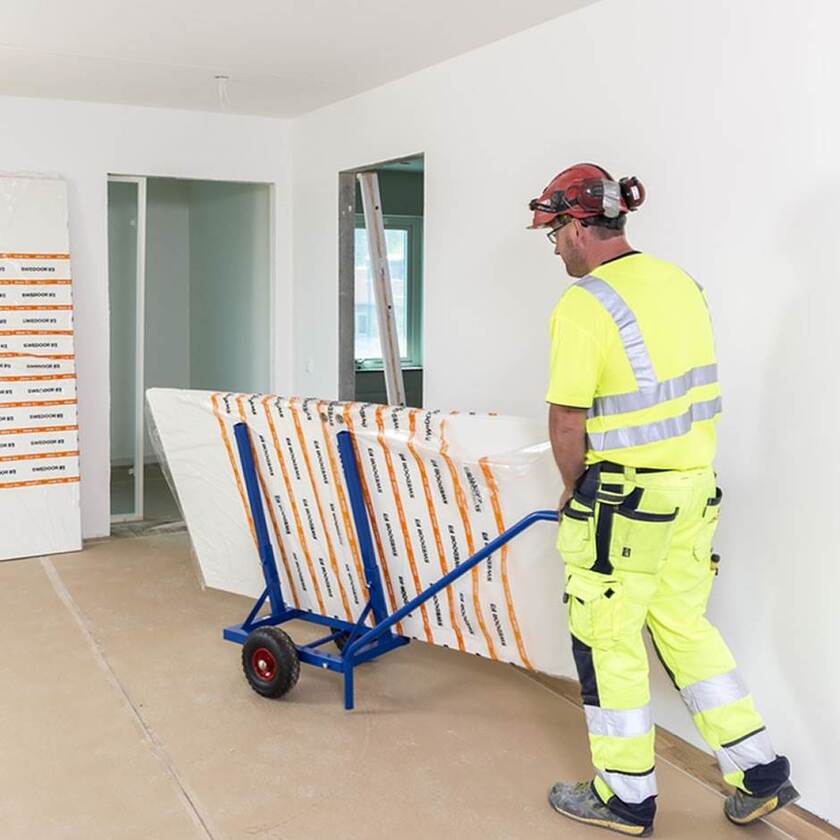 Skivvagn anpassad för manuell transport av skivmaterial inom bygg, lager etc. Skivvagnens 2 rör kan enkelt justeras i höjd (280 - 830 mm) vid hantering av större skivor. Skivvagnen är försedd med två stycken handtagsfästen vilket gör skivvagnen vändbar.