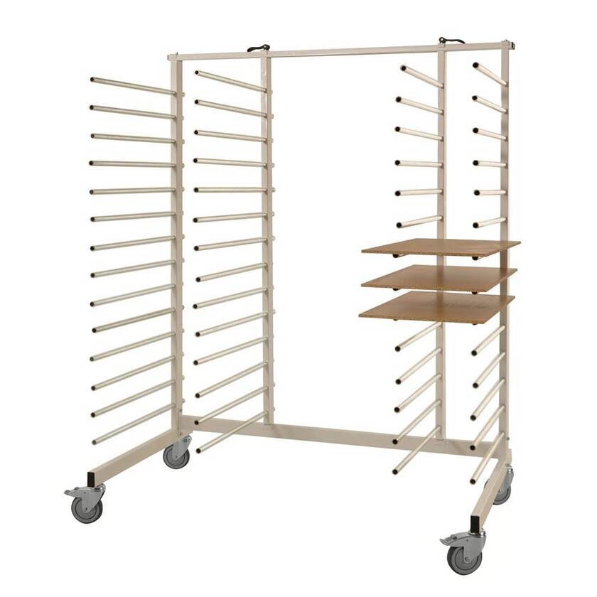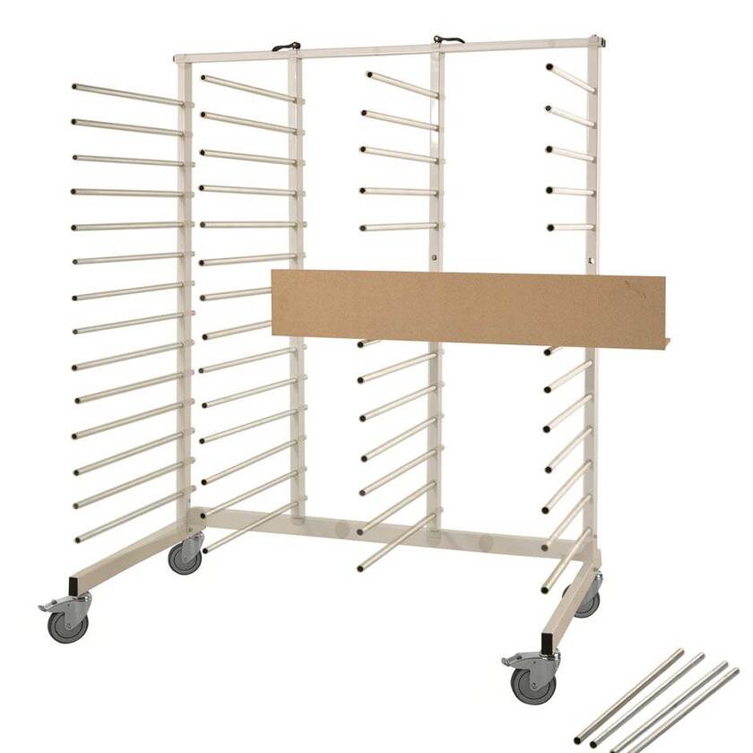 Torkvagn Edgar är en större torkvagn till industribranschen. Pulverlackerad vit med elförzinkande pinnar, överdragna med plast. Sektionerna i mitten är justerbara.