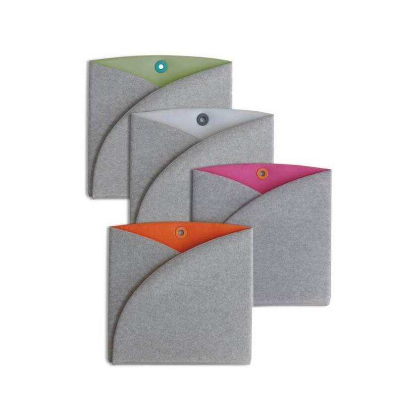 Bordskärmen är avskärmande och ljuddämpande, med en kärna av stabil, återvinningsbar kanalplast. Den är utvändigt klädd med ett grått, lätt melerat tyg med tuftad look. Invändigt är den klädd med alcantara-liknande tyg.