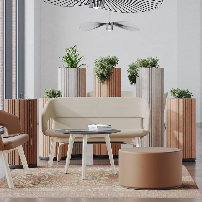 Parthos akustiska, filtbeklädda pelare är estetiskt tilltalade och hjälper till att skapa en behaglig kontorsmiljö. De kan även fylla funktion såsom klädhängare eller laddstation. Pelarna är valbara med inbyggt usb-uttag eller med 6 st klädkrokar.