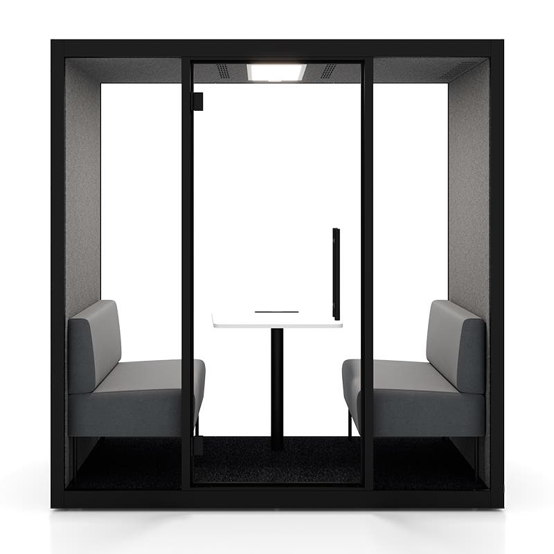 Löser effektivt de problem och begränsningar ett öppet kontorslandskap för med sig. Chatbox Duo är den näst största standard-varianten i Chatbox-serien som även innehåller Chatbox Single, Chatbox Solo och Chatbox Quattro. Duo ger möjlighet till 1+1-möten och arbete i tyst , ostörd miljö. Kommer med ett vägghängt bord som håller för 50 kg belastning.