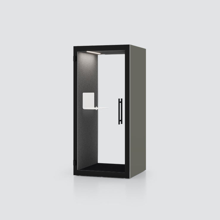 Chatbox Single, tyst rum för 1 person, Grå Charming smoke utsida med grå tygbeklädd insida, inkl. bord, belysning och ventilation