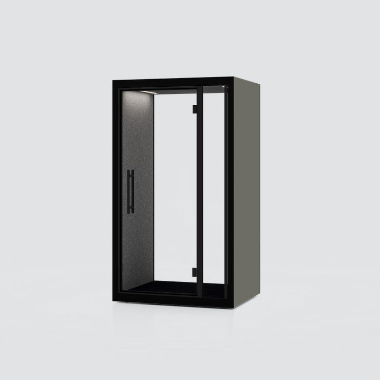 Chatbox Solo, tyst rum för 1 person, Grå Charming smoke utsida med grå tygbeklädd insida, inkl. bord, belysning och ventilation