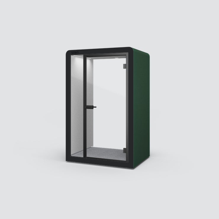 POD Silen Space 1.5, tyst rum för 1 person, Utsida tyg Quest Algae med ljusgrå tygbeklädd insida,, belysning och ventilation