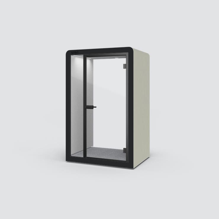 POD Silen Space 1.5, tyst rum för 1 person, Utsida tyg Quest Barnacle med ljusgrå tygbeklädd insida,, belysning och ventilation