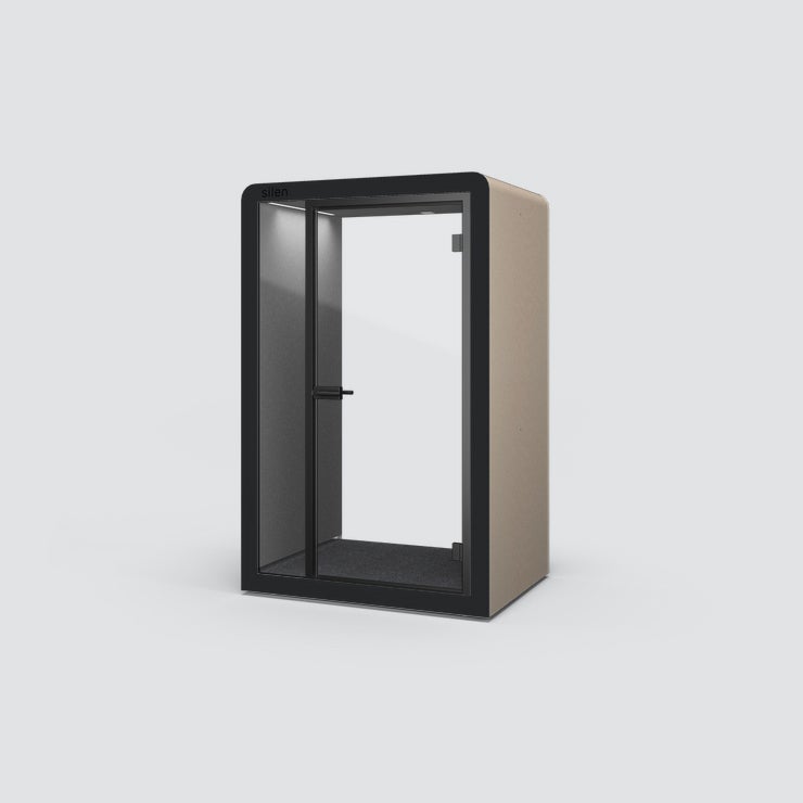 POD Silen Space 1.5, tyst rum för 1 person, Utsida tyg Quest Dritwood med mörkgrå tygbeklädd insida,, belysning och ventilation
