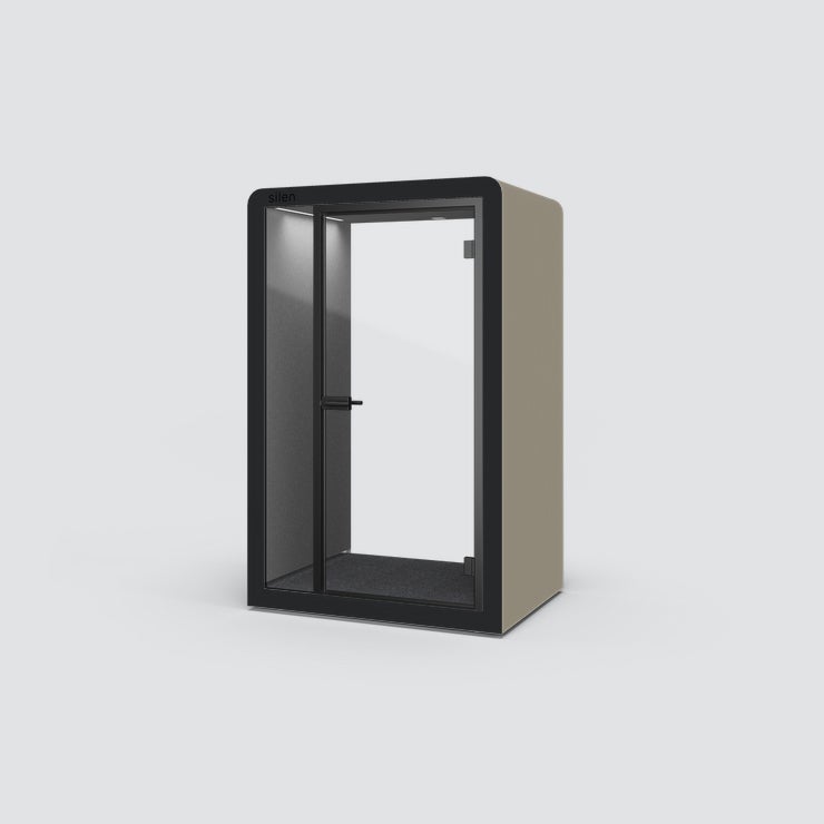 POD Silen Space 1.5, tyst rum för 1 person, Utsida tyg Quest Pebble med mörkgrå tygbeklädd insida,, belysning och ventilation